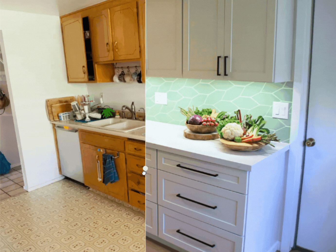 Our clients were eager to transform their outdated, builder-grade kitchen into a space that reflected their modern lifestyle and growing family. They were tired of the cramped layout, lack of storage, and dated aesthetic. With differing design preferences and a limited budget, they sought our expertise to create a kitchen that was beautiful, durable, eco-friendly and functional, while also adding value to their home.